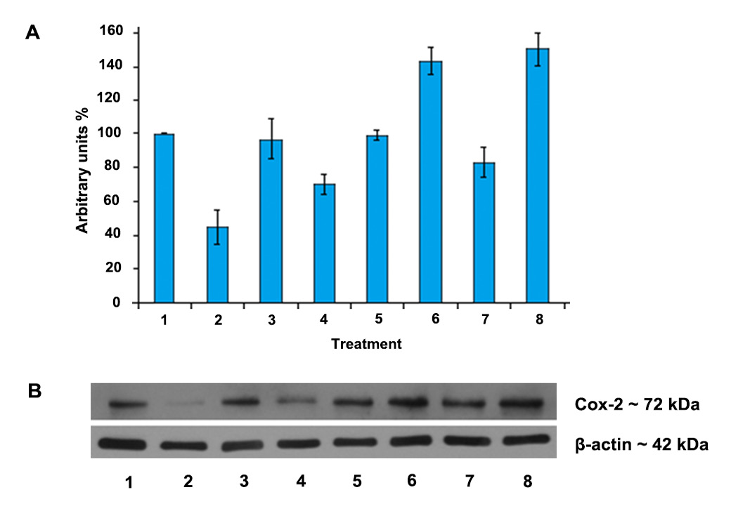 23]. The blockade of upstream kinase IκBα kinase signaling by the natural phenolics tannic acid and protocatechuic acid, inhibited the enzyme level and the activity of COX-2 [