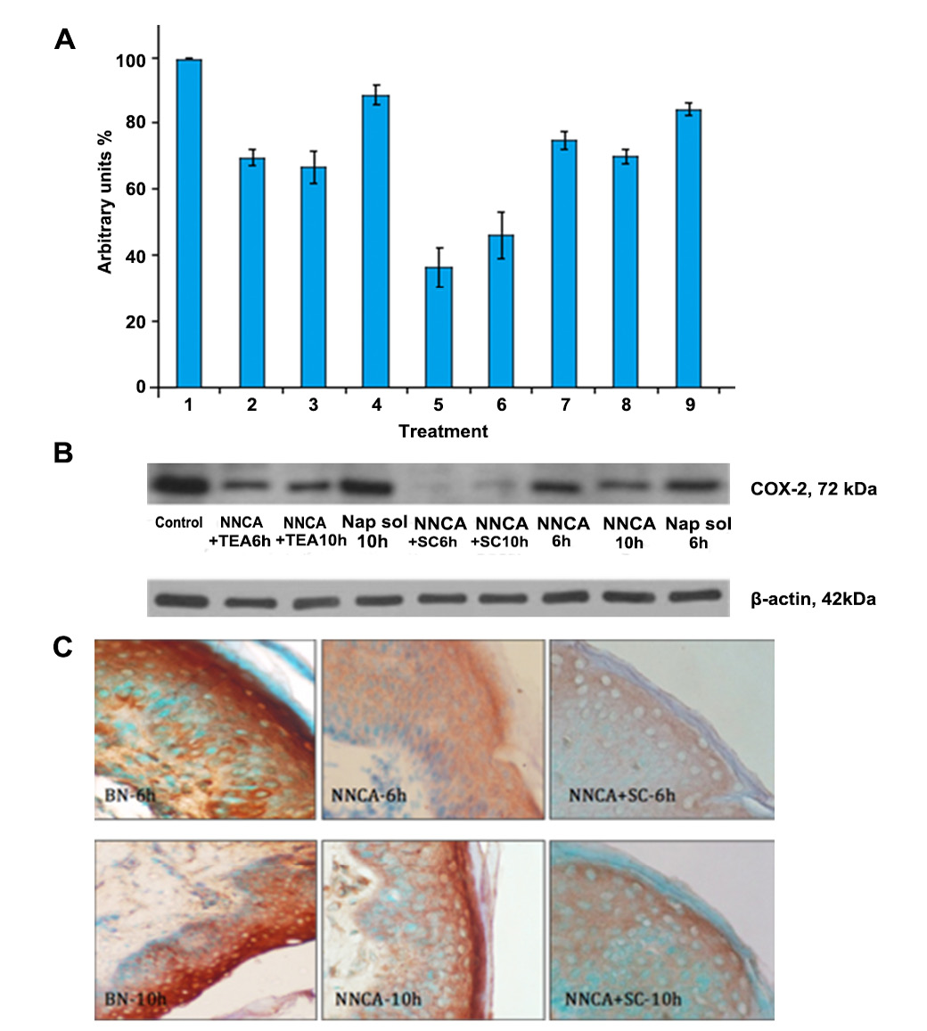 20]. However, determining the mass transport across or mass localization within the skin alone does provide direct information relating to biological activity. Topically applied compounds that are observed to modulate COX-2 expression, either anti-inflammatory or pro-inflammatory, must ipso facto penetrate the skin in sufficient levels and penetrate viable cells allowing sufficient interaction with the inflammation factors, such as inhibiting COX-2.