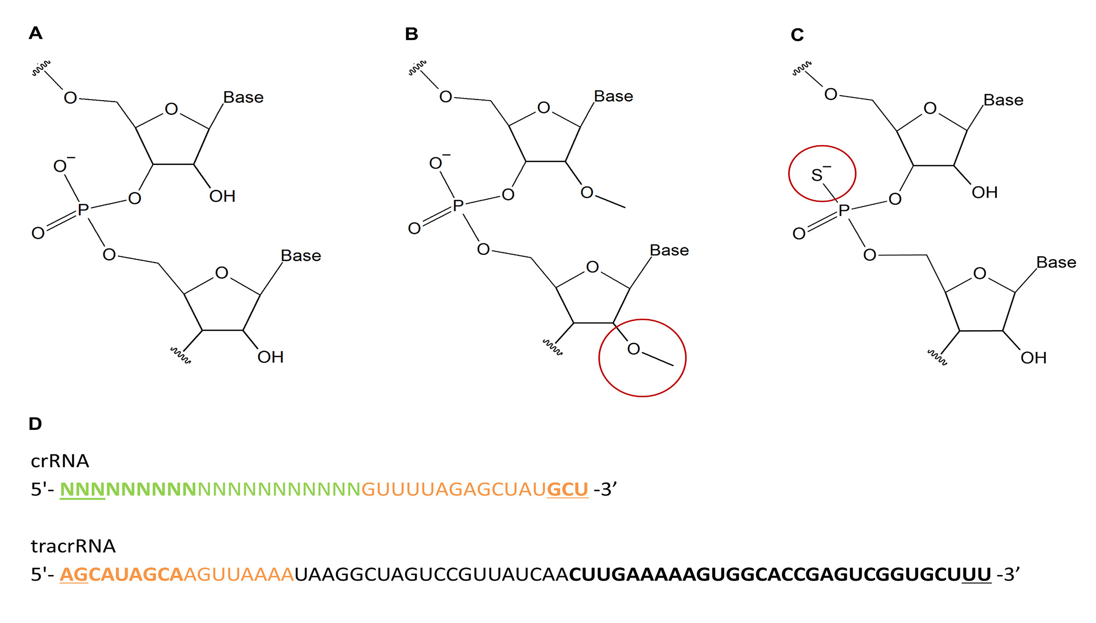 14]. The most frequently used modifications in synthetic RNAs are phosphorothioate (PS) bonds and 2’-O-Methyl (2’OMe) [