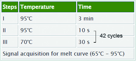 7.3.7.Briefly centrifuge the above mixture and run qPCR using the following conditions.
