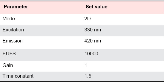 Table 2. Settings for 2475 Fluorescent detector.