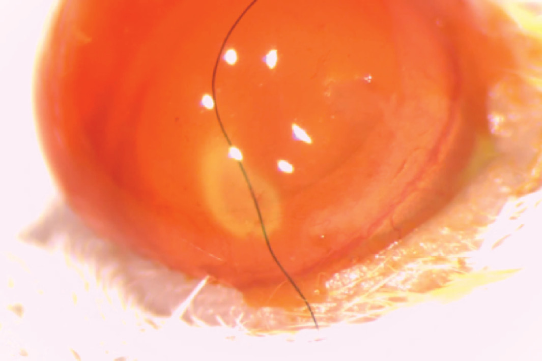 1.During introduction of intra-stromal sutures, one may occasionally perforate the cornea. This is evidenced by leakage of the humor and a subsequent Siedel sign (Fig. 4). In this case, the immune privilege of the anterior chamber is compromised. The compromised cornea should be discharged.