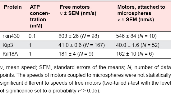 Table 1. Within error margins, the speeds were consistent with the TIRF measurements and literature values [