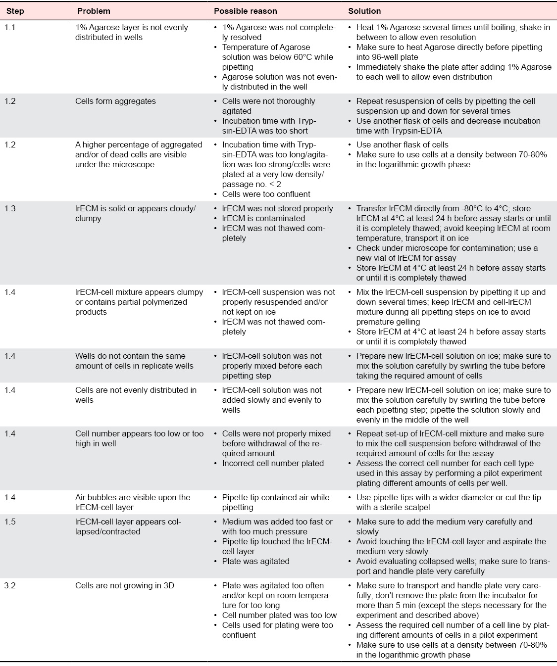 - lrECM working solution: Remove the lrECM from -20 or -80°C and place in a refrigerator at 4°C 2 days before the start of the assay. After 24 h add cell culture medium (without FBS) to a final concentration of 10 mg/ml and incubate on a rotary shaker over night at 4°C. The solution must be kept on ice while pipetting since it gels rapidly. Store at 4°C for up to 2 weeks.