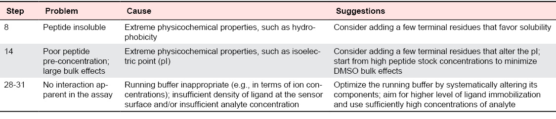 Peptides vary greatly in their biochemical characteristics. Despite the utility of peptide property calculators (see Appendix), appropriate solvents thus need to be determined empirically and problems can occur (see Table 1, Troubleshooting). We proceeded as follows:
